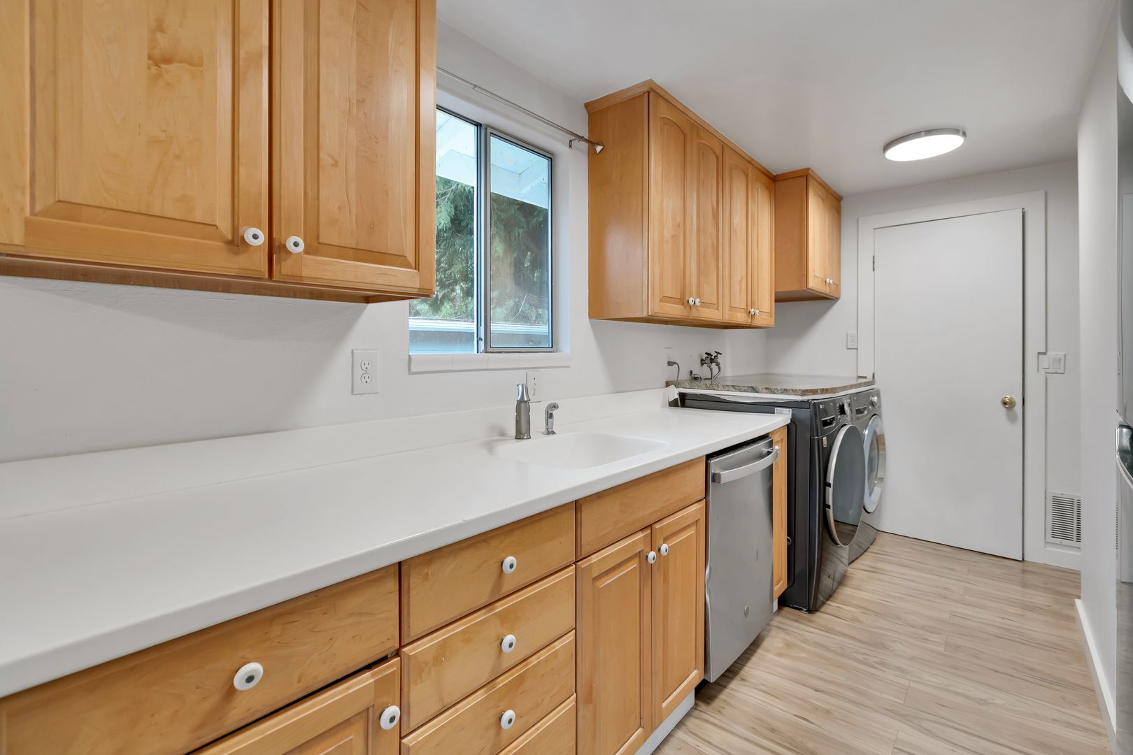Welcome to this Arbor Lake Duplex, a charming One Level unit nestled on a dead-end right across from Abor Lake. This delightful home boasts three bedrooms and 1.75 bathrooms, offering ample space for comfortable living. The primary suite is a haven of relaxation, complete with its own private bathroom. The unit is enhanced by hardwood/laminate floors that add a touch of elegance to the space. For your convenience, the unit comes with an in-unit washer and dryer, making laundry days a breeze. The private backyard is a perfect spot for outdoor relaxation or entertaining. A woodstove insert adds a cozy touch to the living area, perfect for those chilly PNW evenings. Plus, with a park nearby, outdoor activities are just a stone's throw away. Small dog or cat is welcome, with refundable pet deposit, with prior approval.