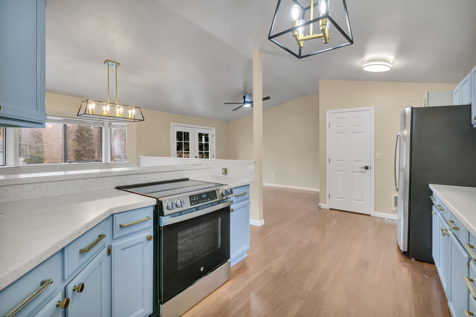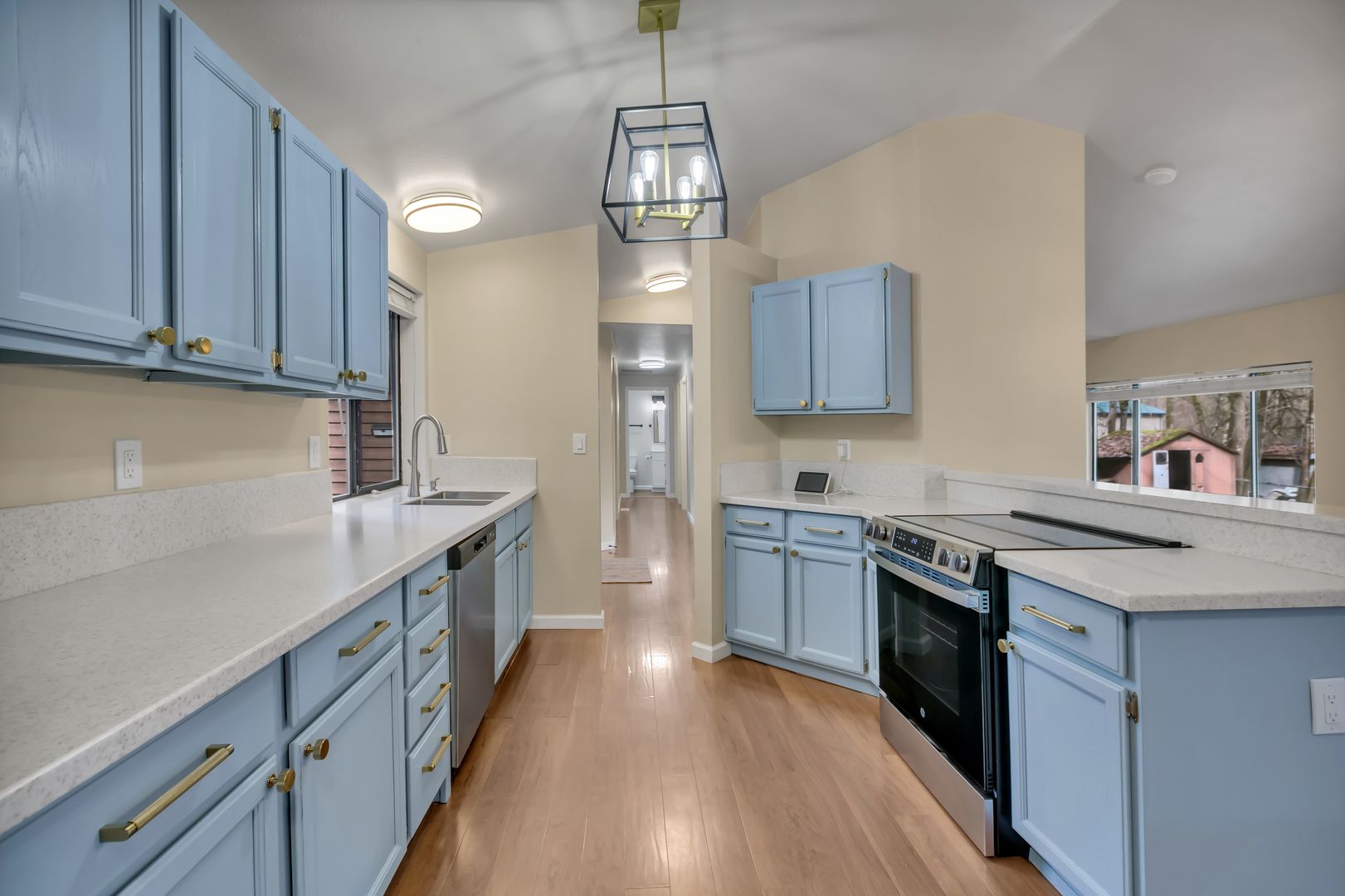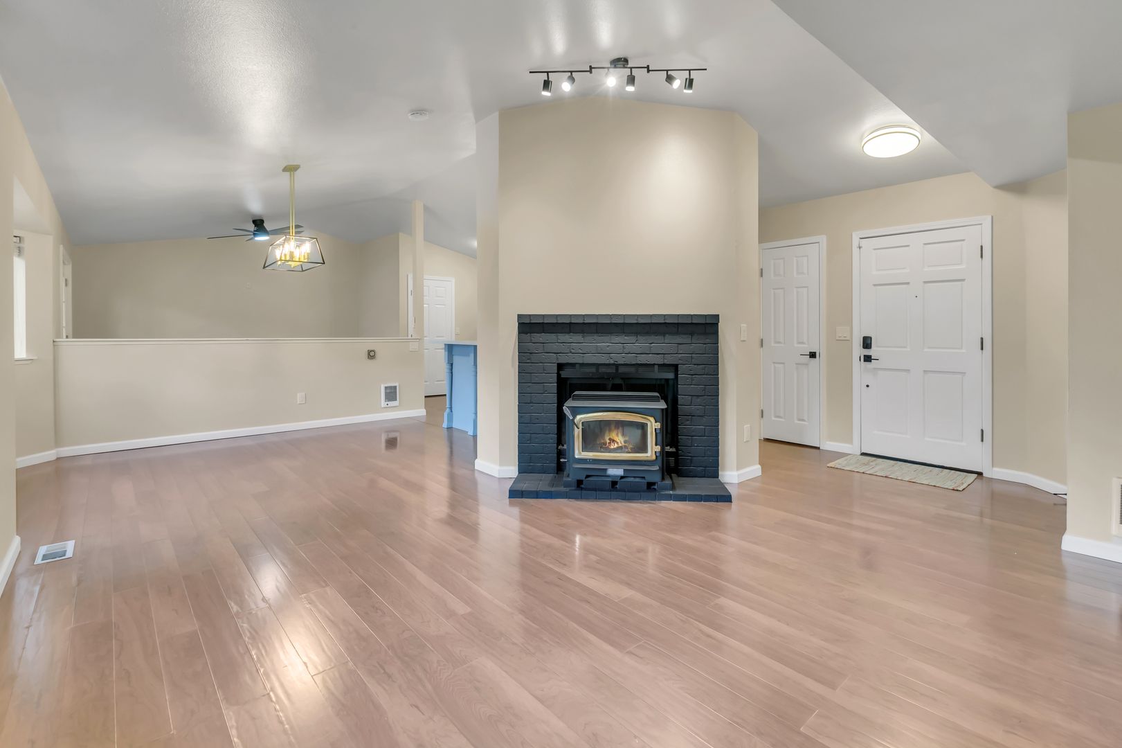 Inside, you’ll find a freshly painted interior with brand new appliances, updated bathrooms, new doors, trim, and modern light fixtures throughout. The bedrooms feature brand new carpeting, creating a comfortable and inviting space. The primary suite offers a private retreat, while the main living area features a cozy woodstove that adds warmth and charm.